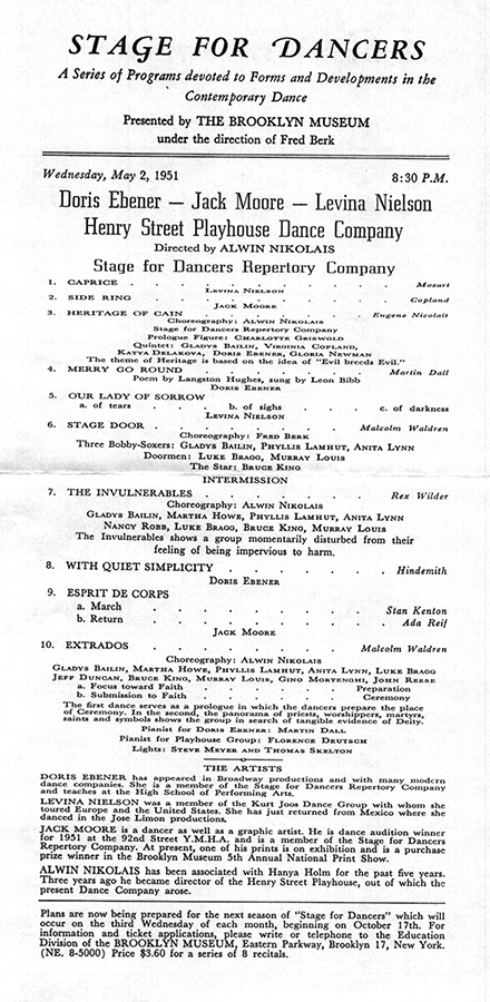 - Member of the Alwin Nikolais Dance Co.; performed extensively during regular NY season, as well as national and European tours.