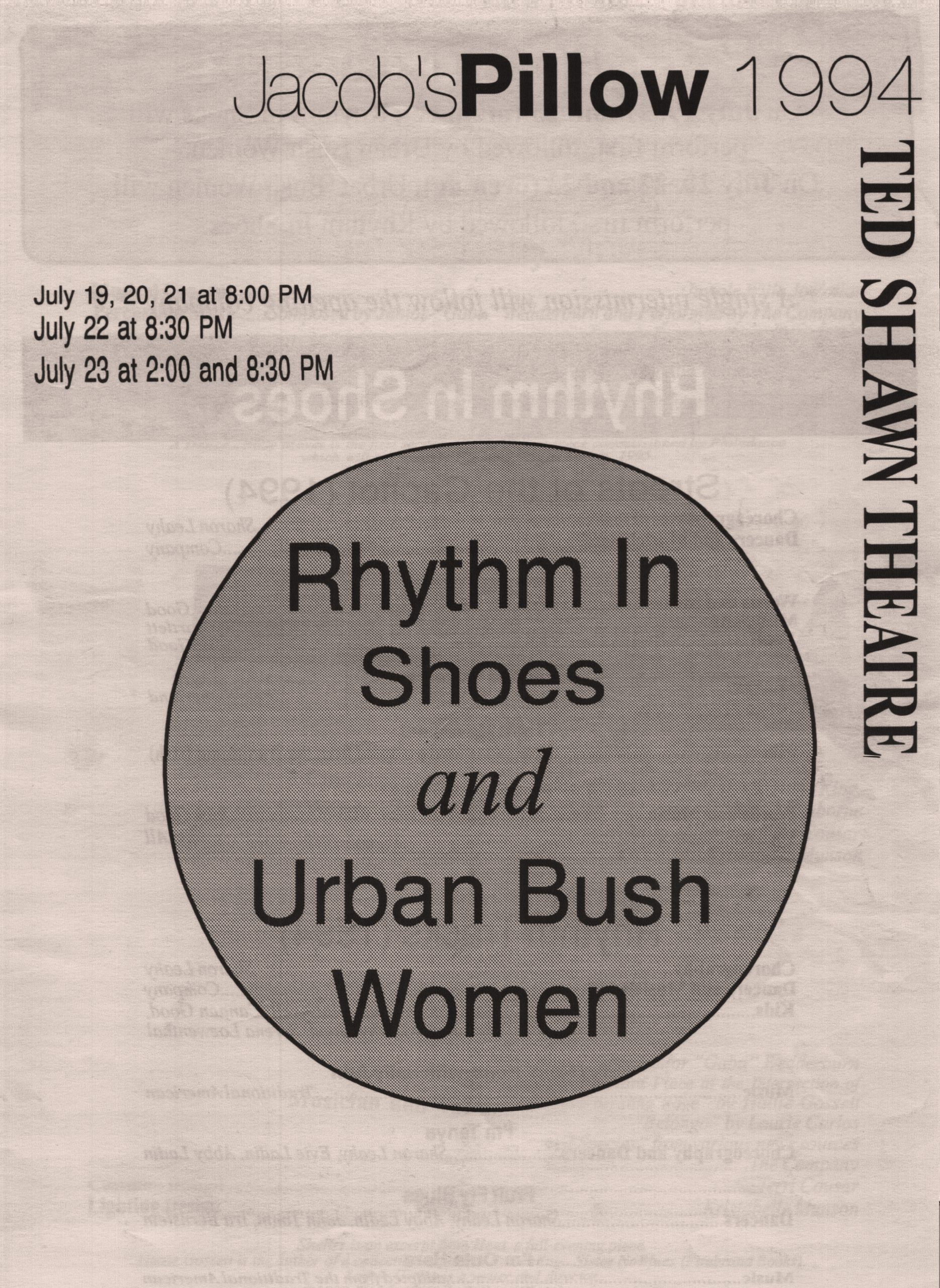 Rhythm in Shoes (RIS) was a music and dance company based in Dayton, Ohio from 1987 to 2010. Artistic directors Sharon Leahy (choreographer) and Rick Good (musical director) co-created concert dance repertoire with live musical accompaniment, and led the company for twenty-three years. RIS fulfilled its mission “to engage the world in music and dance” primarily through American dance genres of rhythm tap, Appalachian social and percussive dance, and other American musical traditions including oldtime, folk, blues, jazz and swing. Leahy and Good’s creative symbiosis was foundational to the scope and breadth of the company’s work.