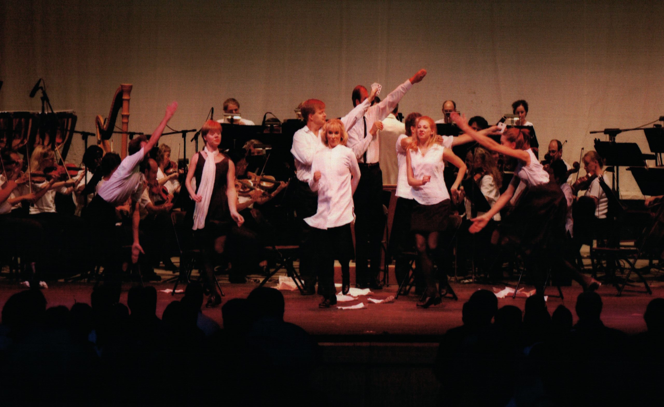 Collaborations were at the heart of the RIS repertory, beginning in 1992 with the band, the Horseflies (NY). A host of others followed: with body percussionist, Keith Terry and Crosspulse (CA), a national touring production with the Red Clay Ramblers (NC), and recurring projects with the Dayton Philharmonic Orchestra. Major commissions from Jacobs Pillow Dance Festival (MA), the Flynn Center for Performing Arts (VT) and Cityfolk (OH) resulted in a multi-state, venue-specific collaboration.